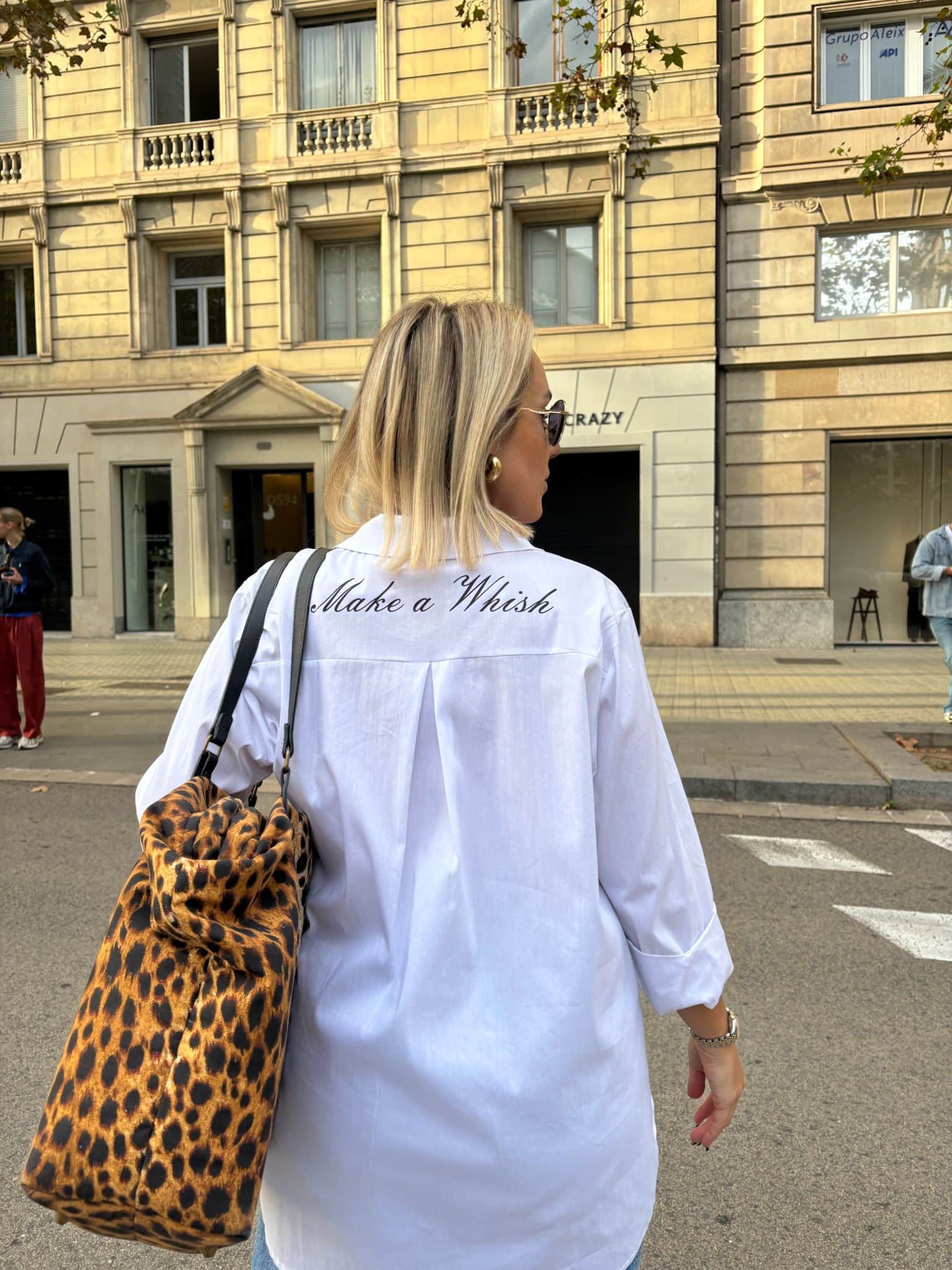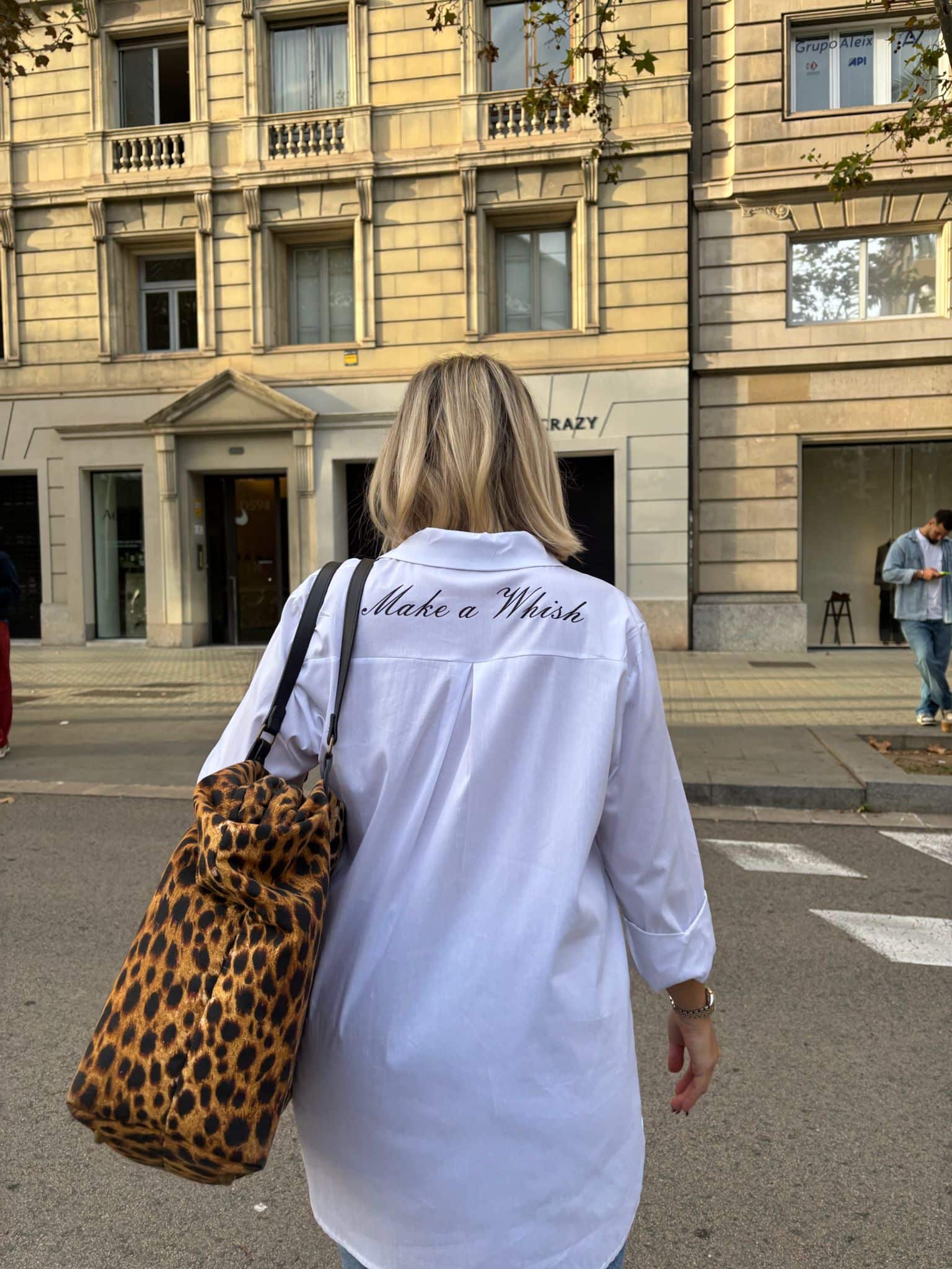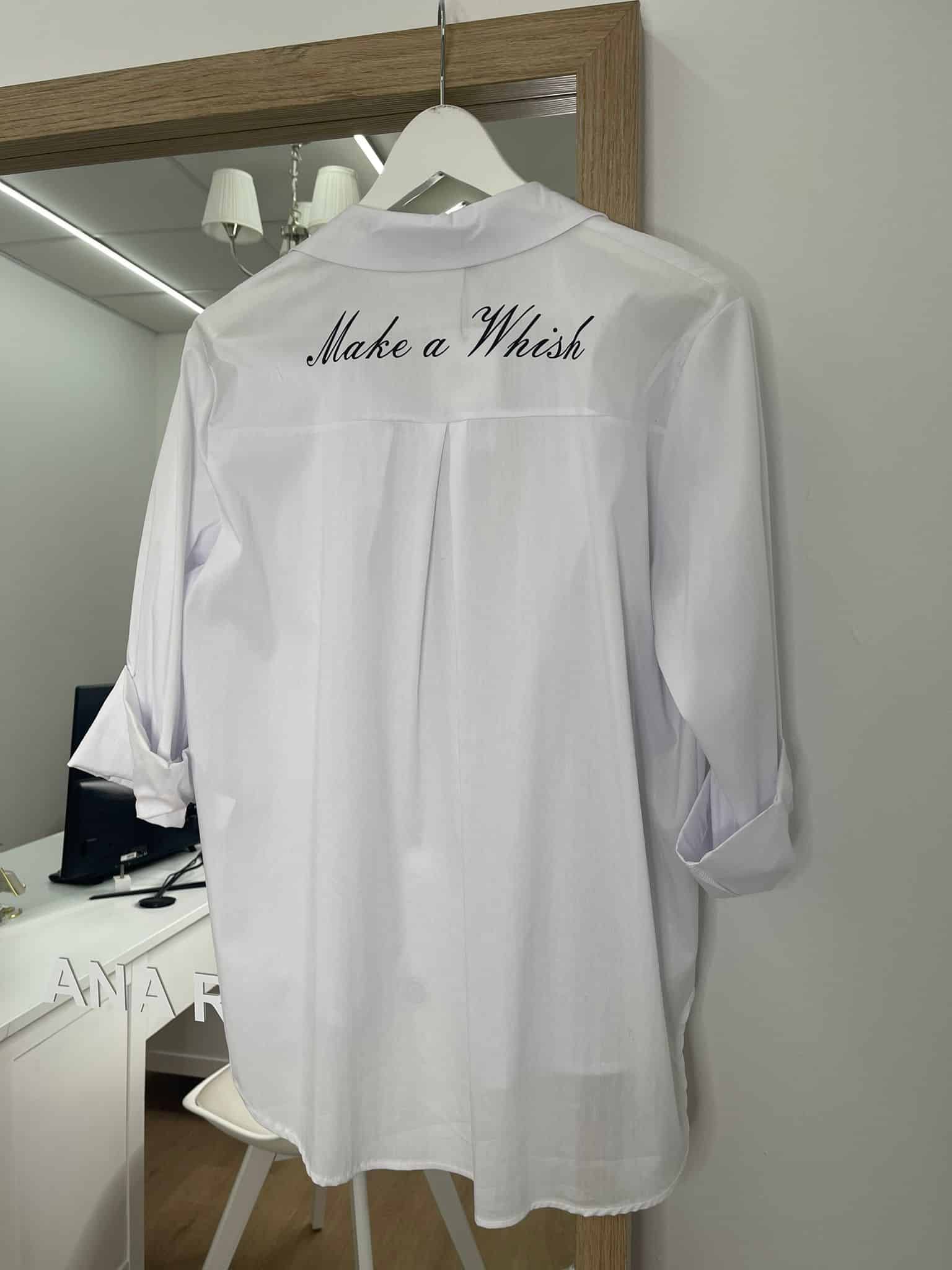 La pieza imprescindible de la temporada. Una camisa oversize de talla única (de la XS a la XL) diseñada en un tejido ligero con un toque de elastano que la hace ultra cómoda y fácil de llevar. Su acabado facilita el planchado y garantiza frescura durante todo el día. Los botones invisibles le aportan una silueta limpia y sofisticada, mientras que el detalle estrella —su frase “Make a Wish”— añade un guiño mágico y lleno de actitud.