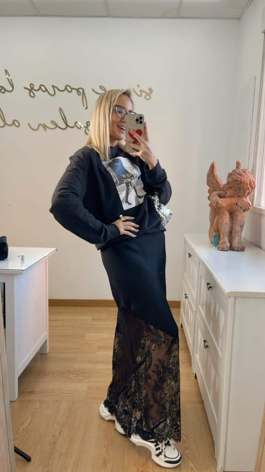 Haz tu look más cañero combinándola con tacones para un estilo audaz, o con bambas para un aire casual y moderno. Completa tu outfit con nuestras sudaderas y blazers para un equilibrio perfecto entre elegancia y actitud.