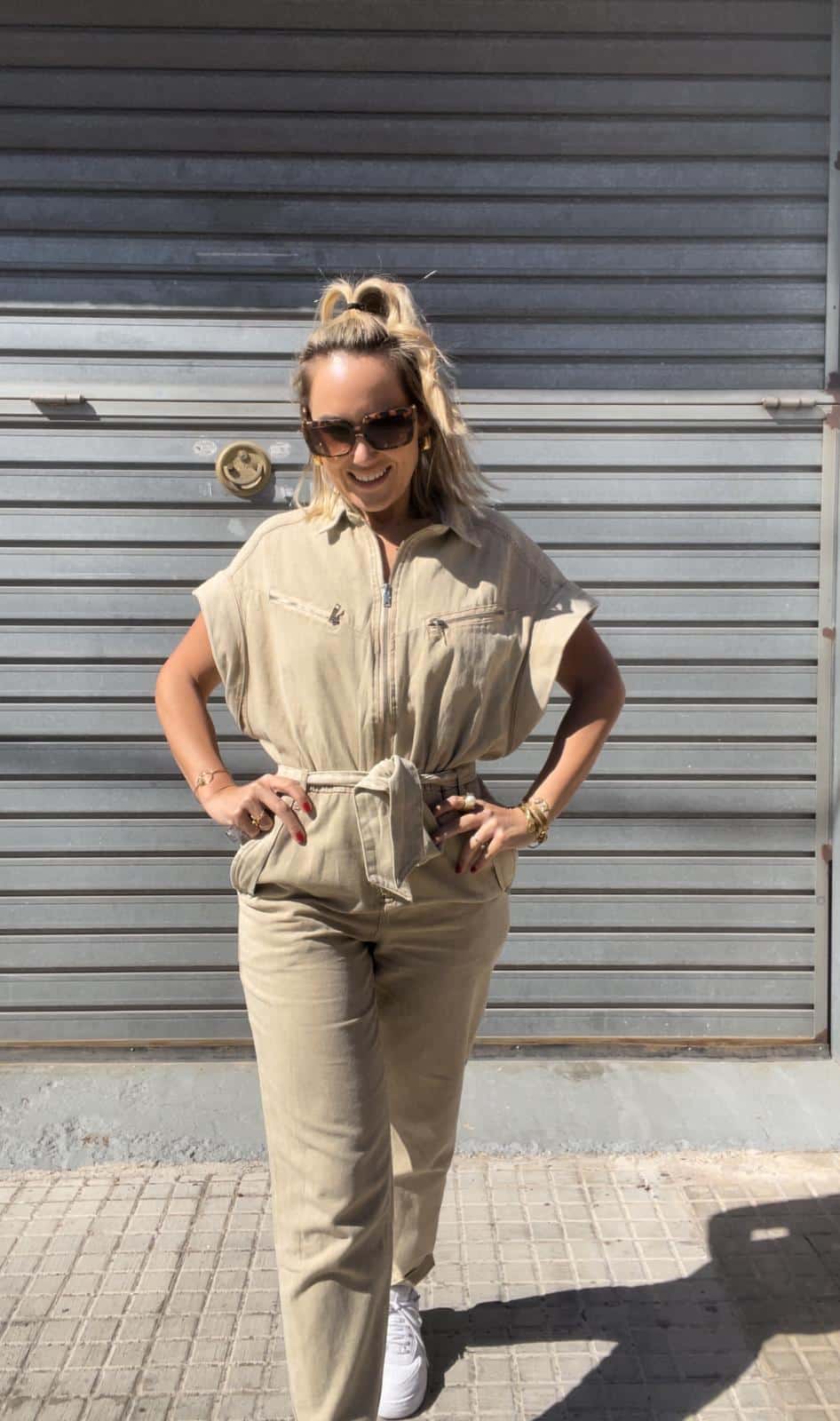 Este mono de color beige es la combinación perfecta de estilo y comodidad para la temporada primavera verano.