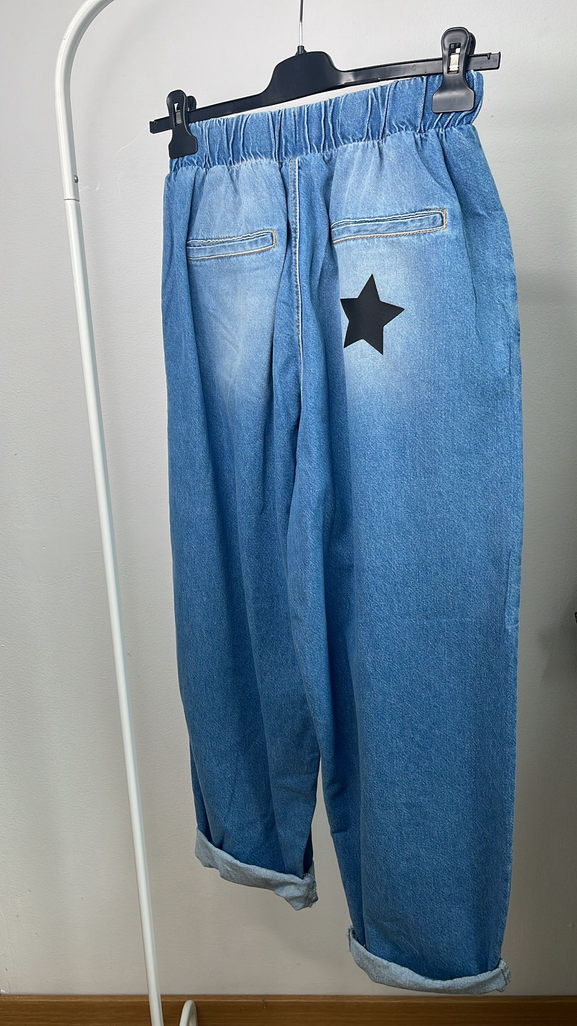 Este pantalón balloon Star es la opción ideal para quienes buscan un look moderno sin renunciar a la comodidad. Su cintura engomada permite un ajuste perfecto para tallas únicas (XS a L), adaptándose a diferentes siluetas con un fit holgado y favorecedor.