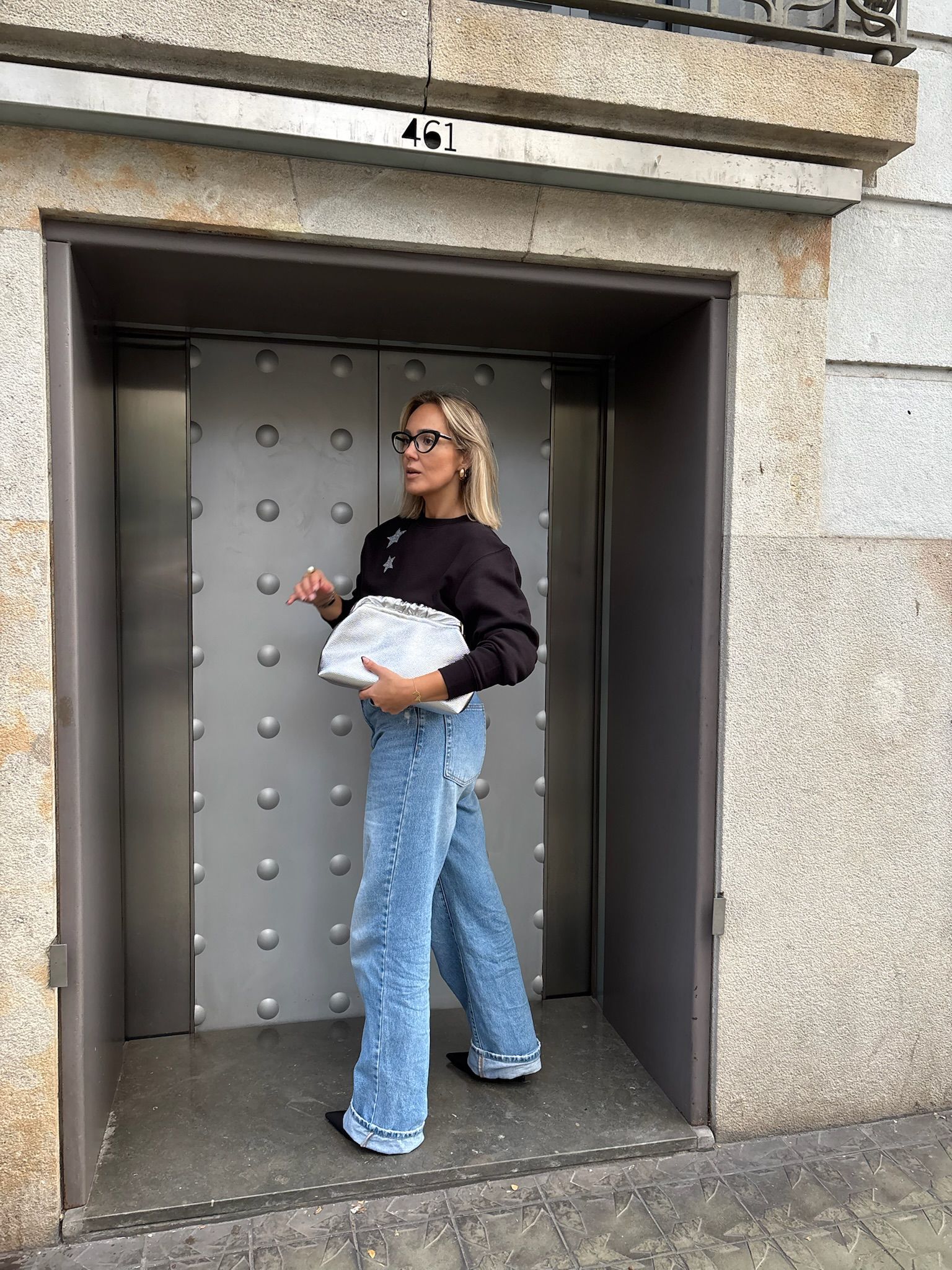 Esta sudadera es pura actitud y brillo. Con un diseño cómodo y versátil, destaca por su detalle de estrellas en la parte delantera y en una de las mangas, añadiendo un toque de magia a tu look diario.